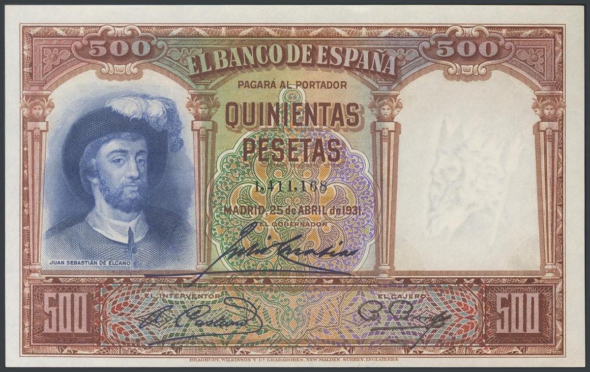 500 pesetas. April 25, 1931. Without series. (Edifil 2017: 361). UNC.