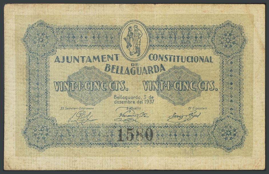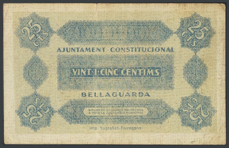 English BELLAGUARDA (LERIDA). 25 cents. December 3, 1937. (González: 6958). F.