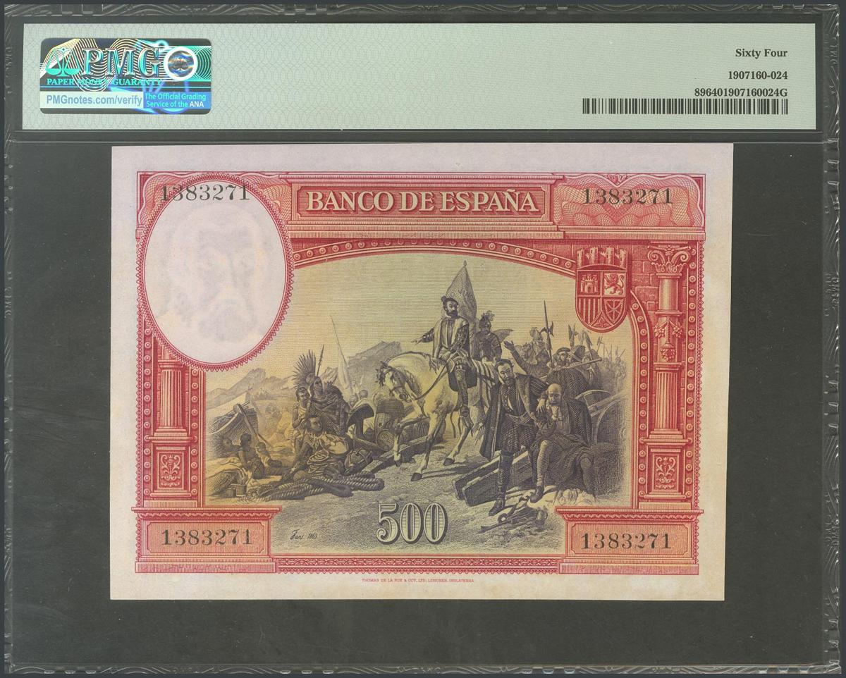 500 pesetas. January 7, 1935. Without series. (Edifil 2017: 365). UNC. PMG64 package.