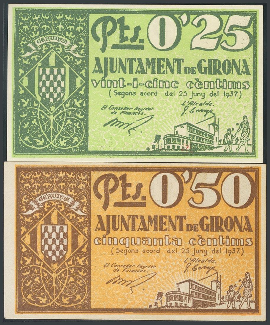 GERONA. 25 Cents and 50 Cents. June 1937. (González: 8031/32). AU.