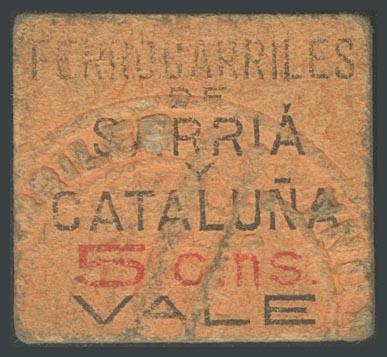 Voucher of 5 Cents for the Sarriá and Catalonia Railway. VG.