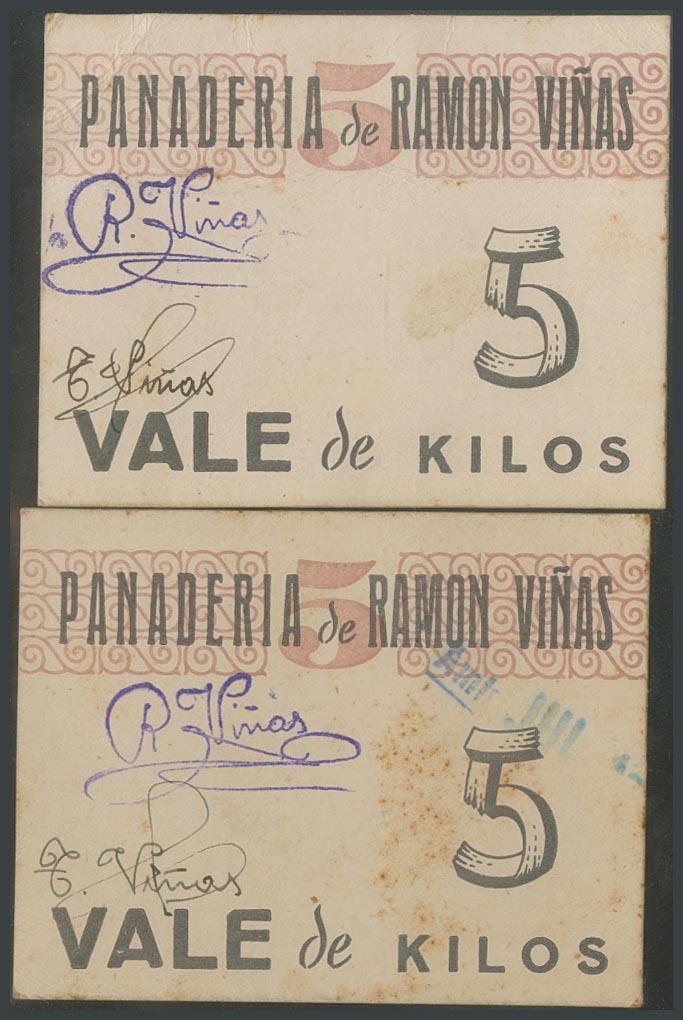 Set of two vouchers of 5 Kilos from the Ramón Viñas Bakery. VF.