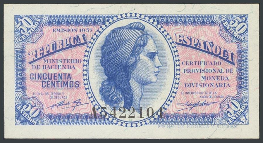 50 Cents. 1937. Series A. (Edifil 2017: 391). UNC.