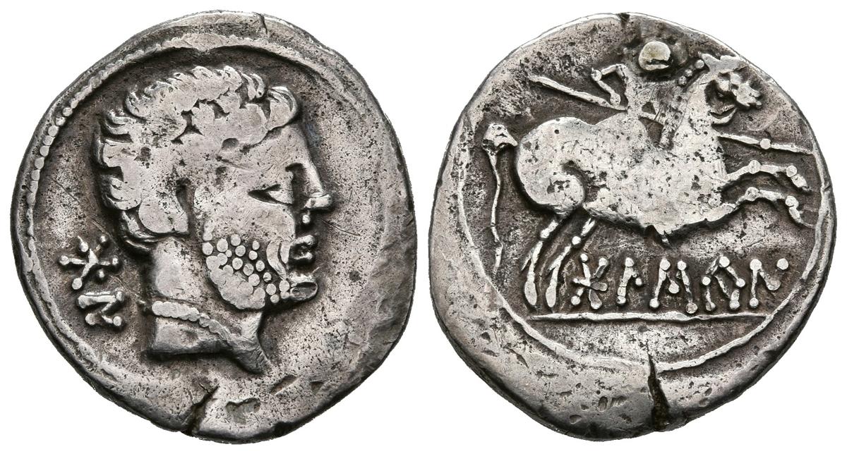 BOLSCAN (Huesca). Denarius. (Ar. 3.80g / 21mm). 180-20 BC (FAB-1912). VG. Coinage voids.