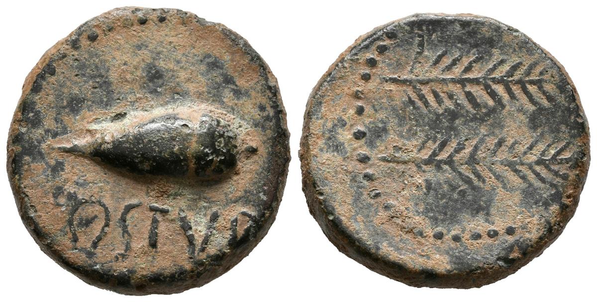 OSTUR (Carmona, Seville). Semis. (Ae. 10.52g / 22mm). 150-50 BC Anv: Acorn on left, below legend: OSTVR. Rev: Two palms to the right. (FAB-1976). F.