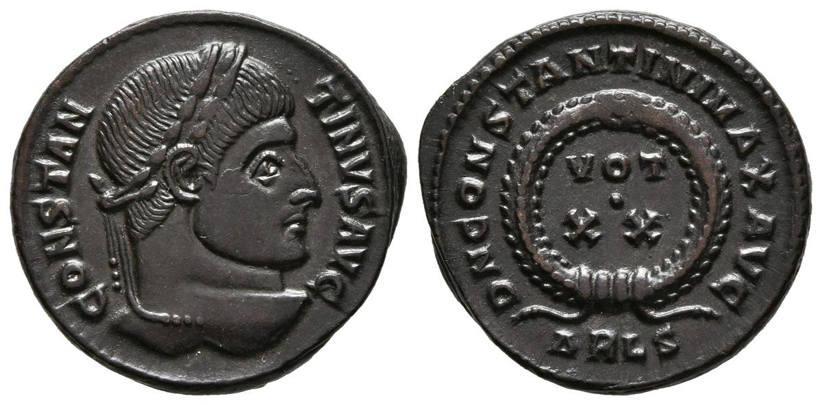 CONSTANTINE I. Follis. (Ae. 3.15g / 19mm). 322 AD Arelate. (RIC 246). AU. Nice specimen.