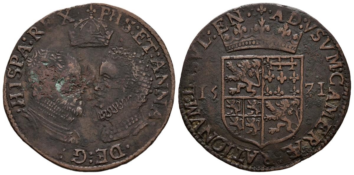 English FELIPE II (1556-1598). Jetón. (Ae. 4.71g / 29mm). 1571. Counting fee for the court of accounts. Victory against the Turks. (Dugniolle 2540). VG/ F. Rust spots on the front.