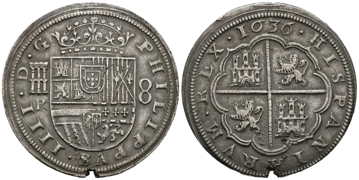 FELIPE IV (1621-1665). 8 Royals. (Ar. 26.41g / 42mm). 1636. Segovia R. (Cal-2019-1610). VF. Broken flange.