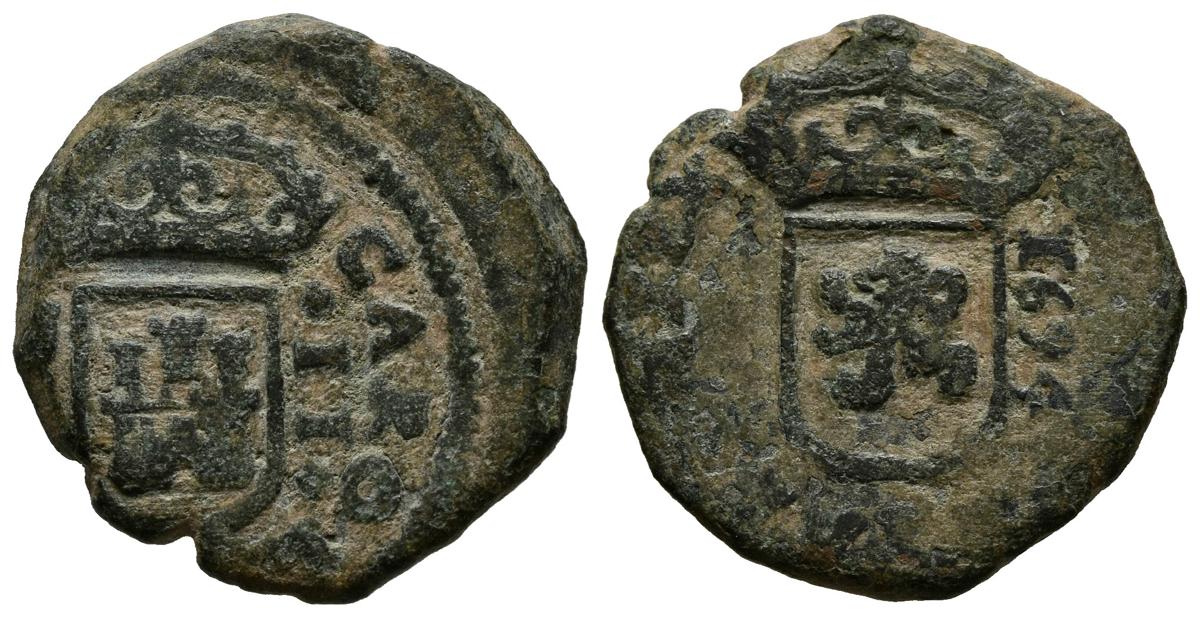 CHARLES II (1665-1700). 2 Maravedís. (Ae. 5.70g / 20mm). 1694. Linares, Jaén. (Cal-2019-76). F.