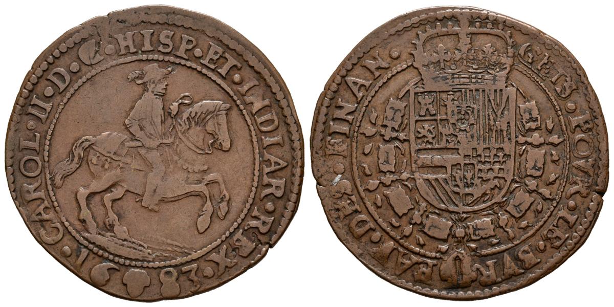 English CHARLES II (1665-1700). Jetón. (Ae. 5.97g / 31mm). 1683. Brussels. Finance Office. (Vq-13922). F.