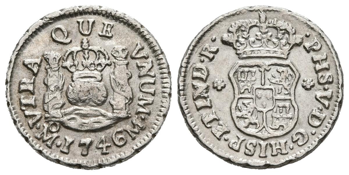 English FELIPE V (1700-1746). 1/2 Real. (Ar. 1.71g / 15mm). 1746. México M. (Cal-2019-273). AU. Scarce as well.