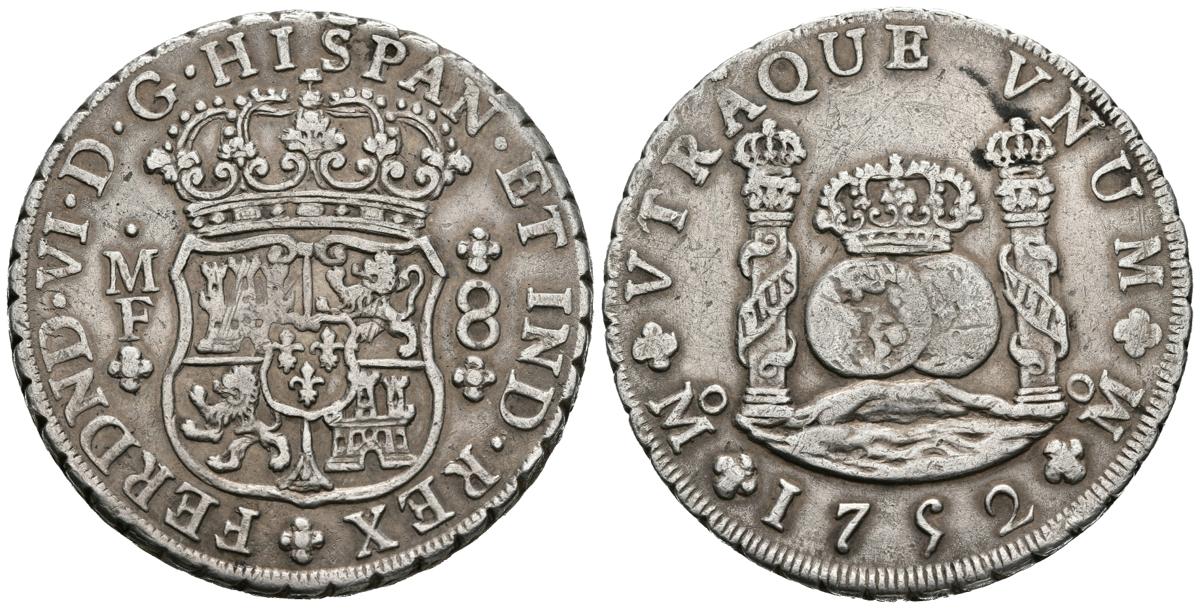 FERNANDO VI (1746-1759). 8 Royals. (Ar. 26.87g / 39mm). 1752. Mexico MF. (Cal-2019-477). F.