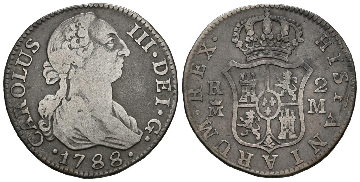 English CHARLES III (1759-1788). 2 Real. (Ar. 5.69g / 26mm). 1788. Madrid M. (Cal-2019-640). VG.