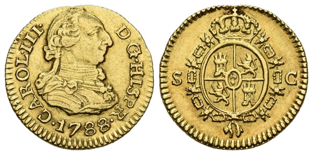 CHARLES III (1759-1788). 1/2 Shield. (Au 1.73g / 15mm). 1788. Sevilla C. (Cal-2019-1318). XF.