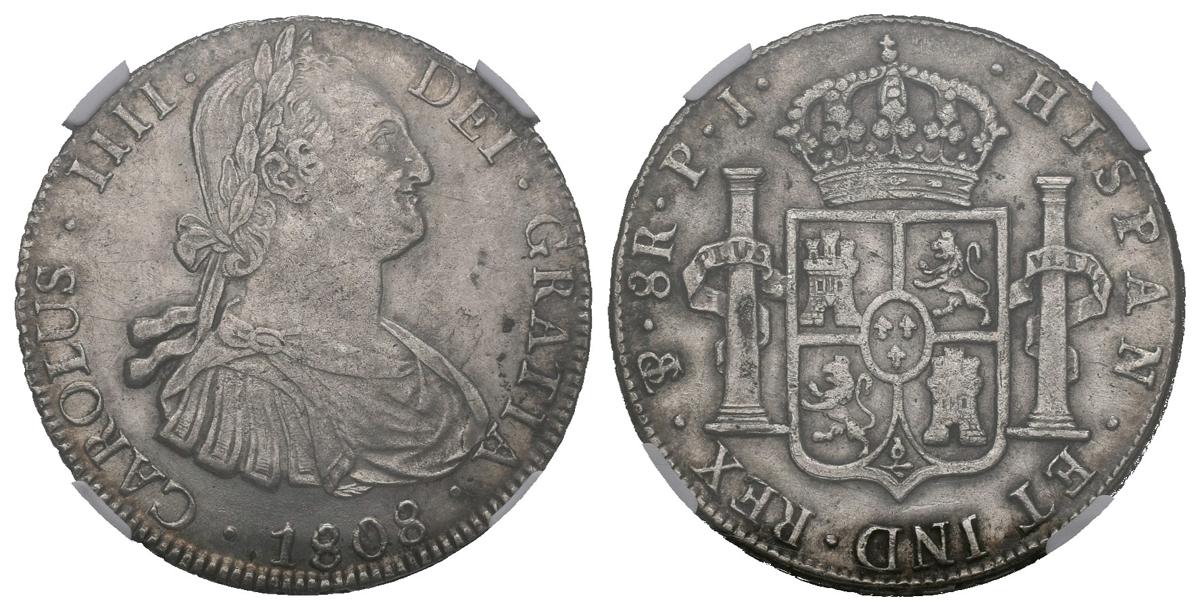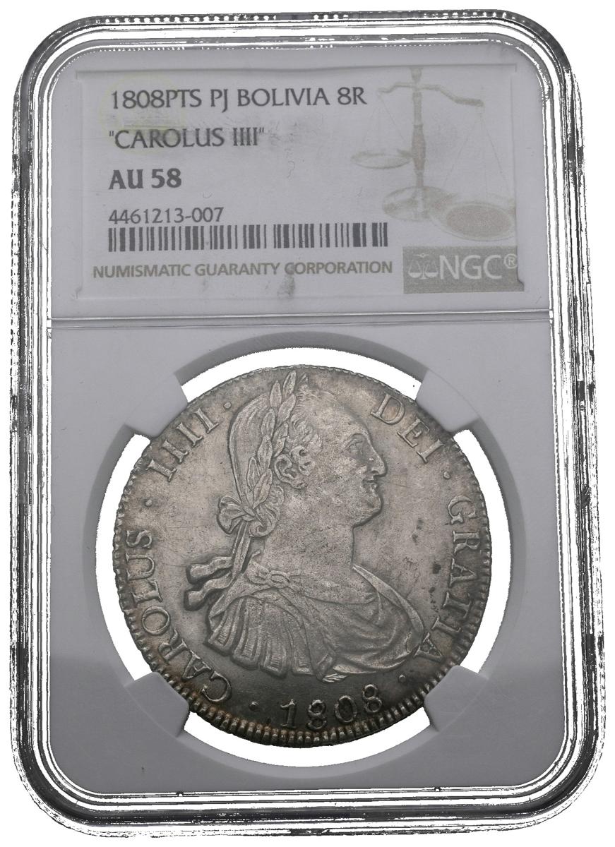 CHARLES IV (1788-1808). 8 Royals. (Ar. 27.00g / 38mm) *. 1808. Potosí PJ. (Cal-2019-1014). AU. Encapsulated by NGC AU58. * Theoretical weight.
