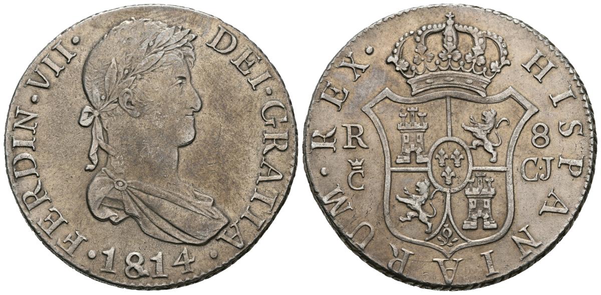 FERNANDO VII (1808-1833). 8 Royals. (Ar. 27.25g / 38mm). 1814. Cádiz CJ. (Cal-2019-1154). XF.