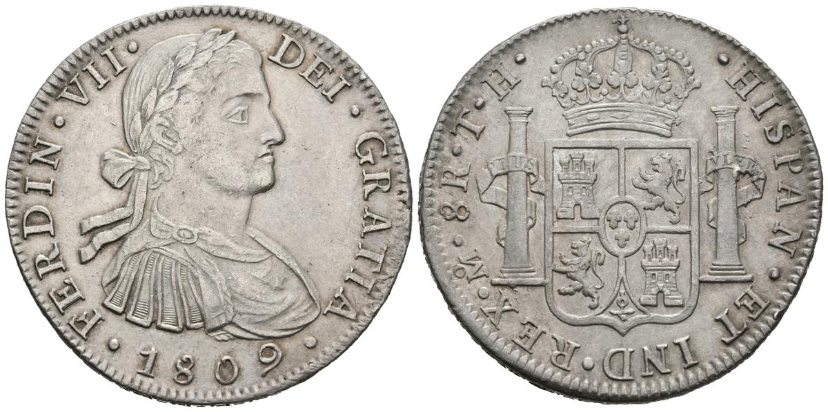 English FERNANDO VII (1808-1833). 8 Royals. (Ar. 26.85g / 40mm). 1809. Mexico TH. (Cal-2019-1308). AU.