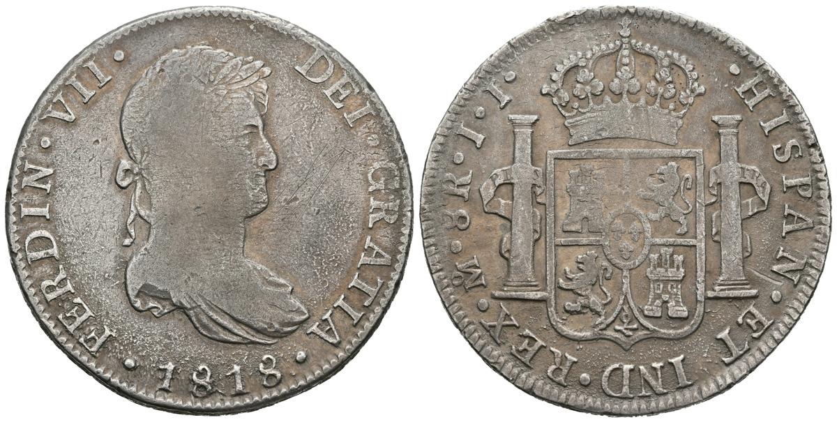 English FERNANDO VII (1808-1833). 8 Royals. (Ar. 26.67g / 40mm). 1818. Mexico JJ. (Cal-2019-1333). F.