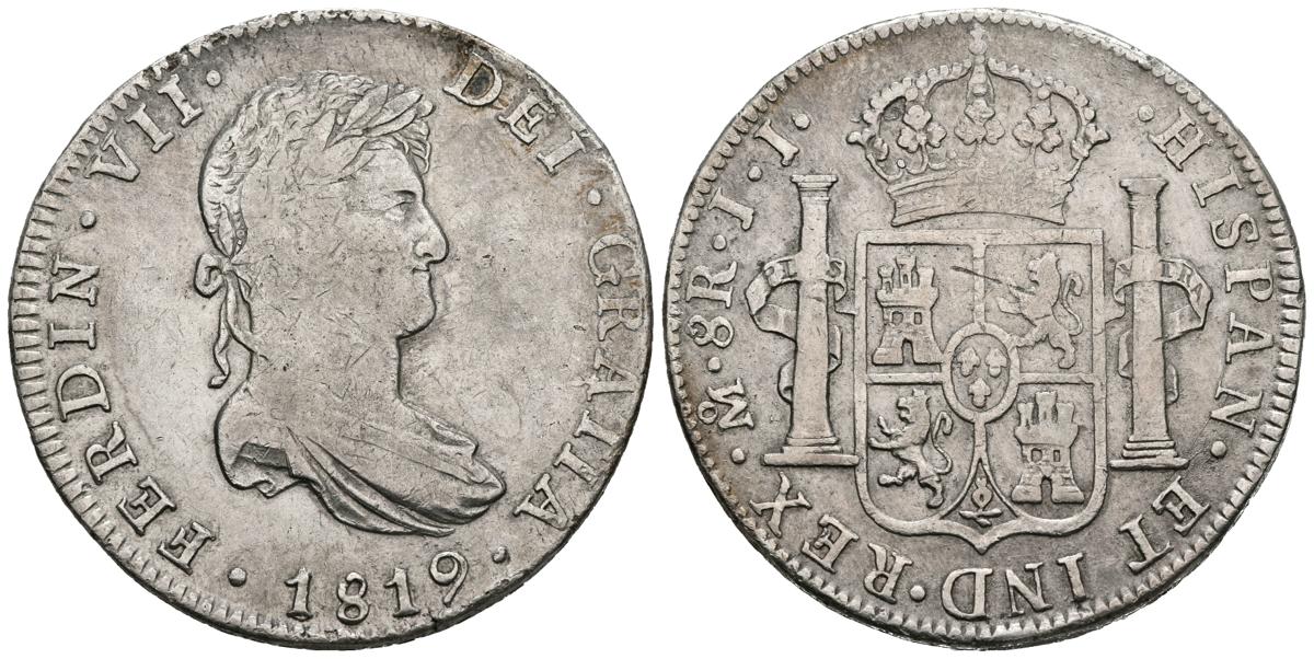 FERNANDO VII (1808-1833). 8 Royals. (Ar. 26.69g / 39mm). 1819. Mexico JJ. (Cal-2019-1334). F.