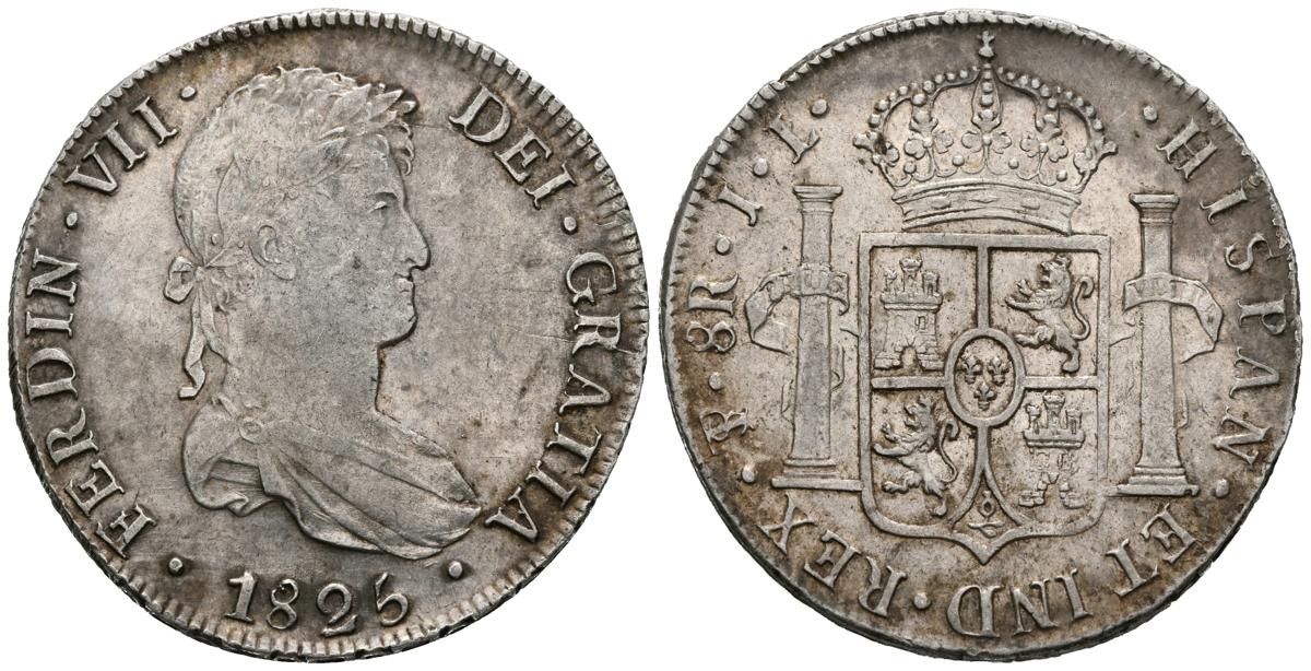 FERNANDO VII (1808-1833). 8 Royals. (Ar. 26.85g / 38mm). 1825. Potosí JL. (Cal-2019-1394). Republican mintage. VF.