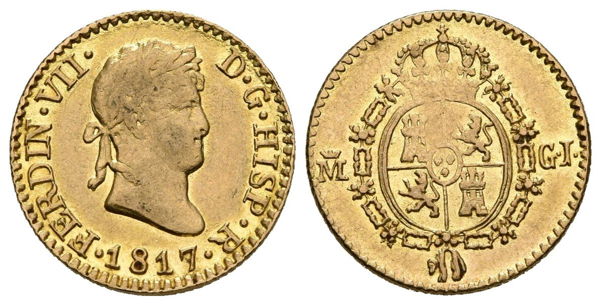 English FERNANDO VII (1808-1833). 1/2 Shields. (Au. 1.80g / 14mm). 1817. Madrid GJ. (Cal-2019-1486). AU. Nice specimen.