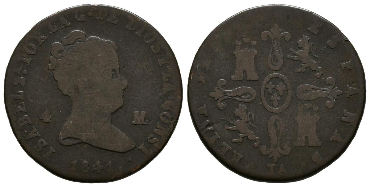 ISABEL II (1833-1868). 4 Maravedís. (Ae. 4.60g / 23mm). 1841. Jubia. (Cal-2019-69). G. Very rare.