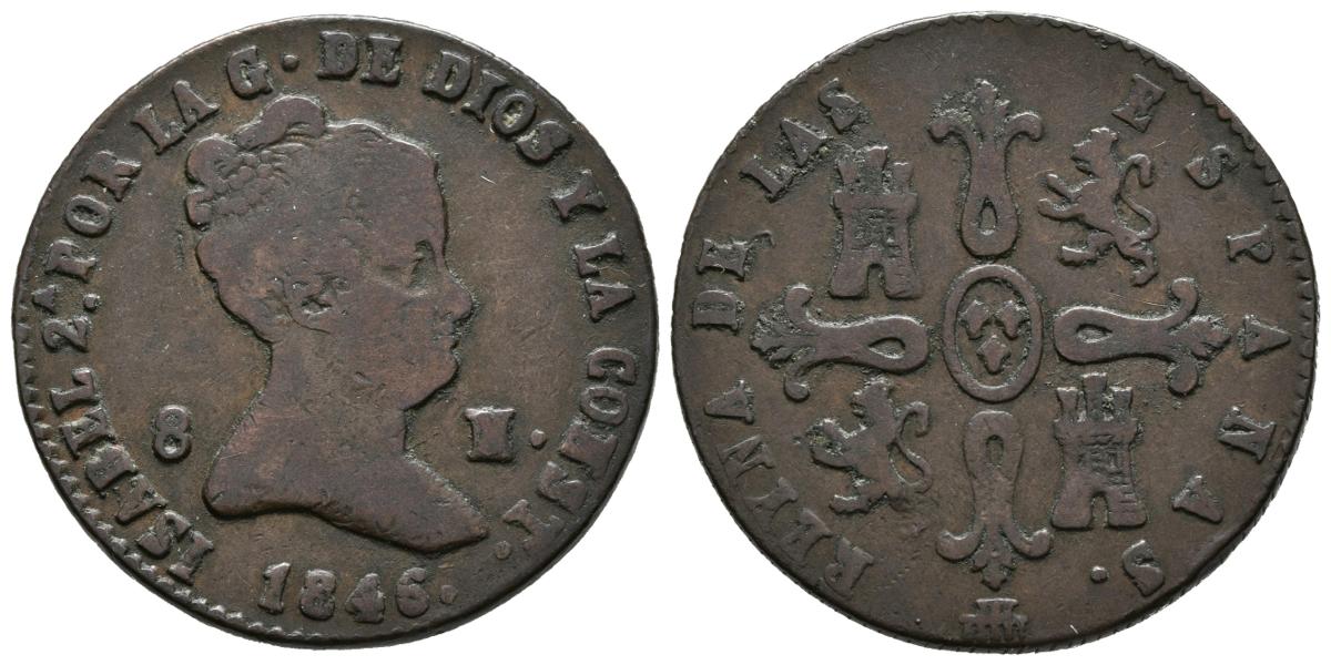 ISABEL II (1833-1868). 8 Maravedís (Ae. 10.15g / 29mm). 1846. Segovia. (Cal-2019-133). F.