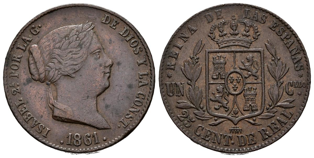 ISABEL II (1833-1868). 25 Real Cents. (Ae. 9.47g / 27mm). 1861. Segovia. (Cal-2019-194). VF.