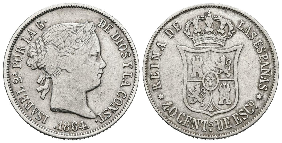 ISABEL II (1833-1868). 40 Cents of Escudo. (Ar. 5.07g / 23mm). 1864. Madrid. (Cal-2019-499). F. Scratch on the obverse.