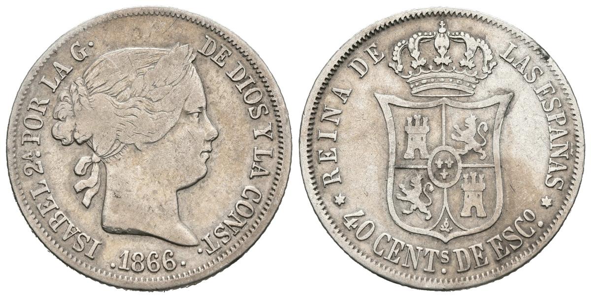 English ISABEL II (1833-1868). 40 Cents of Escudo. (Ar. 5.06g / 23mm). 1866. Madrid. (Cal-2019-501). F.