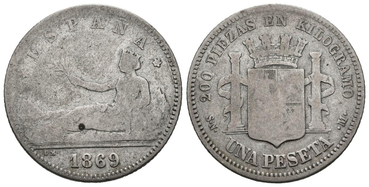 PROVISIONAL GOVERNMENT (1868-1874). 1 peseta. (Ar. 4.52g / 23mm). 1869 * 18-69. Madrid SNM. (Cal-2019-17). G. Limited.