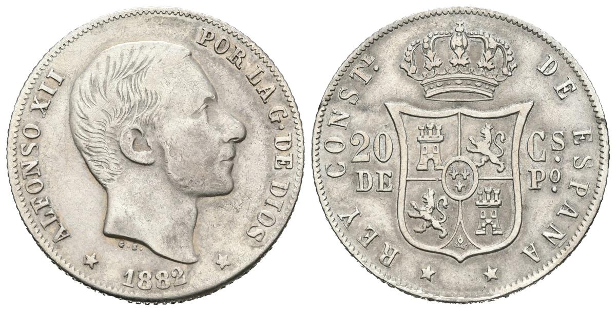 ALFONSO XII (1874-1885). 20 cents. (Ar. 5.15g / 23mm). 1882. Manila. (Cal-2019-107). F. Scratch cleaning.