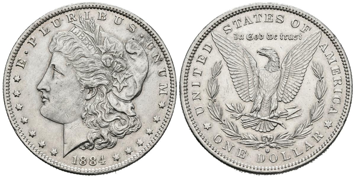 U.S. 1 USD. (Ar. 26.66g / 38mm). 1884. New Orleans O. (Km # 110). AU. Scratch cleaning.