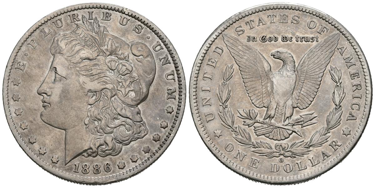 U.S. 1 USD. (Ar. 26.52g / 38mm). 1886. New Orleans. O. (Km # 110). VF. Cleaned.