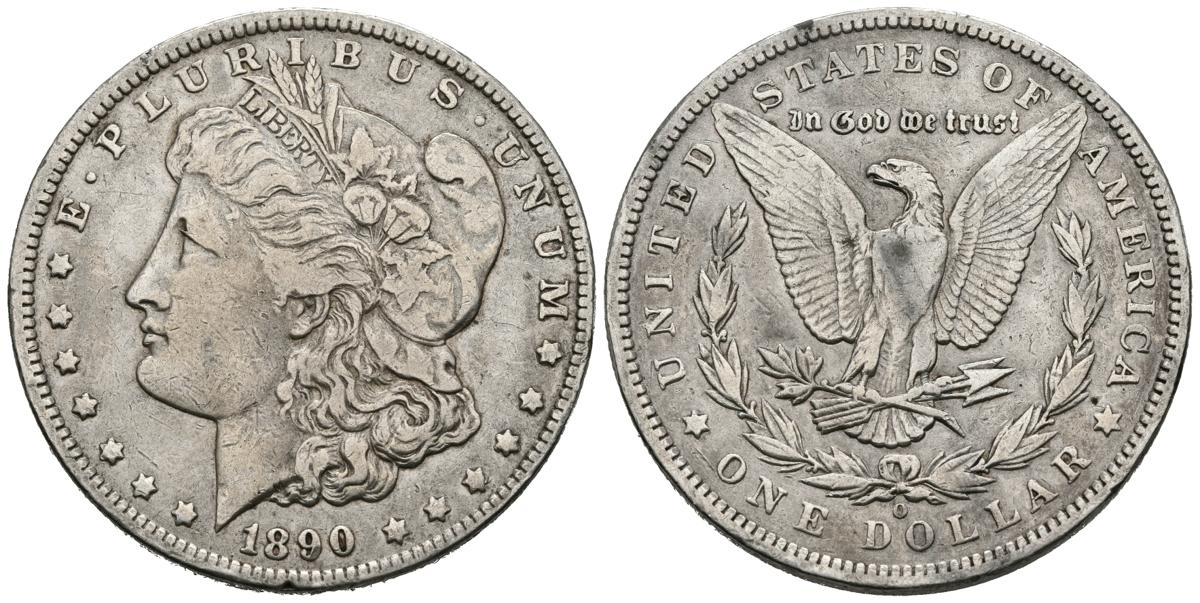 U.S. 1 USD. (Ar. 26.44g / 38mm). 1890. New Orleans. O. (Km # 110). F.
