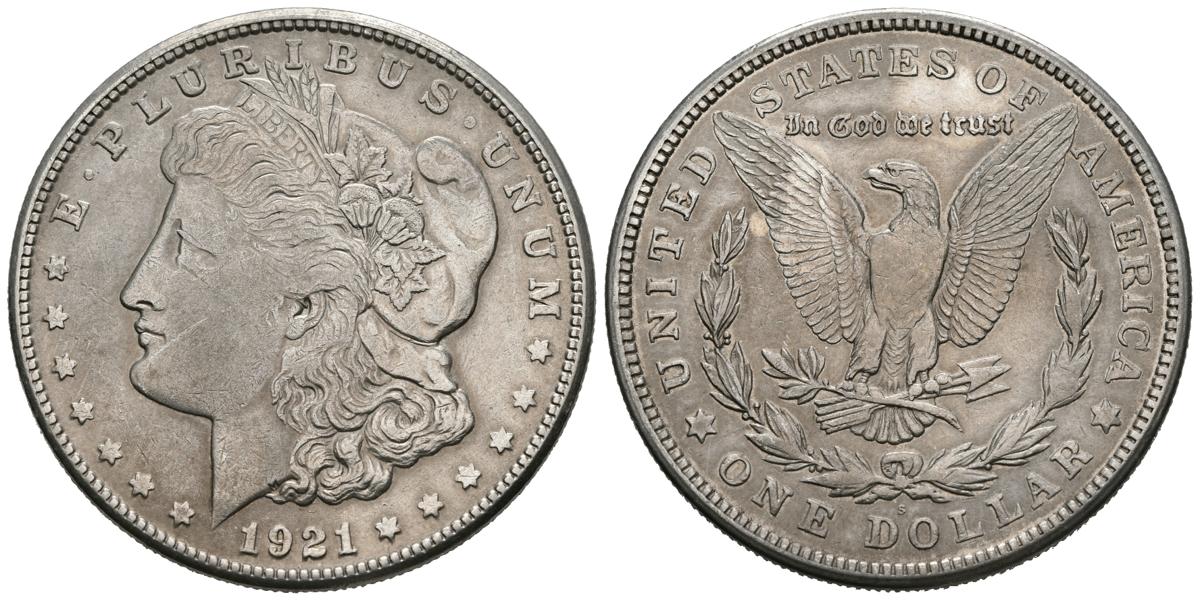 English U.S. 1 USD. (Ar. 26.83g / 38mm). 1921. San Francisco. S. (Km # 110). F/ VF