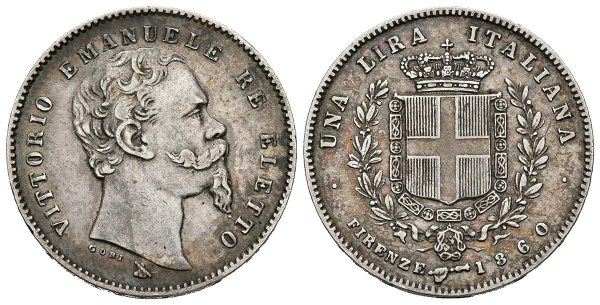 ITALY, Victor Enmanuel II (1861-1878). 1 Lyre. (Ar. 4.91g / 23mm). 1860. Florence. (Montenegro 117; Km # 19/9). F.