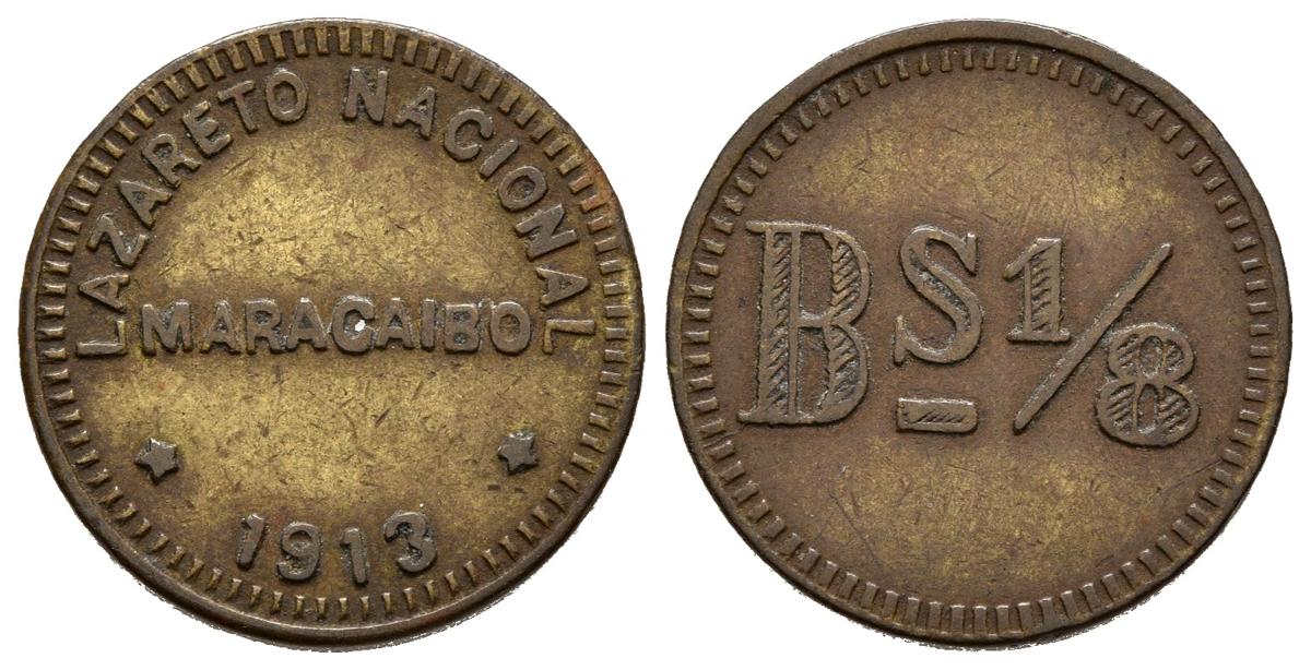 UNITED STATES OF VENEZUELA. 1/8 Bolívar. (Ae. 2.25g / 16mm). 1913. National Lazaretto. Maracaibo. (Km # L3). VF.