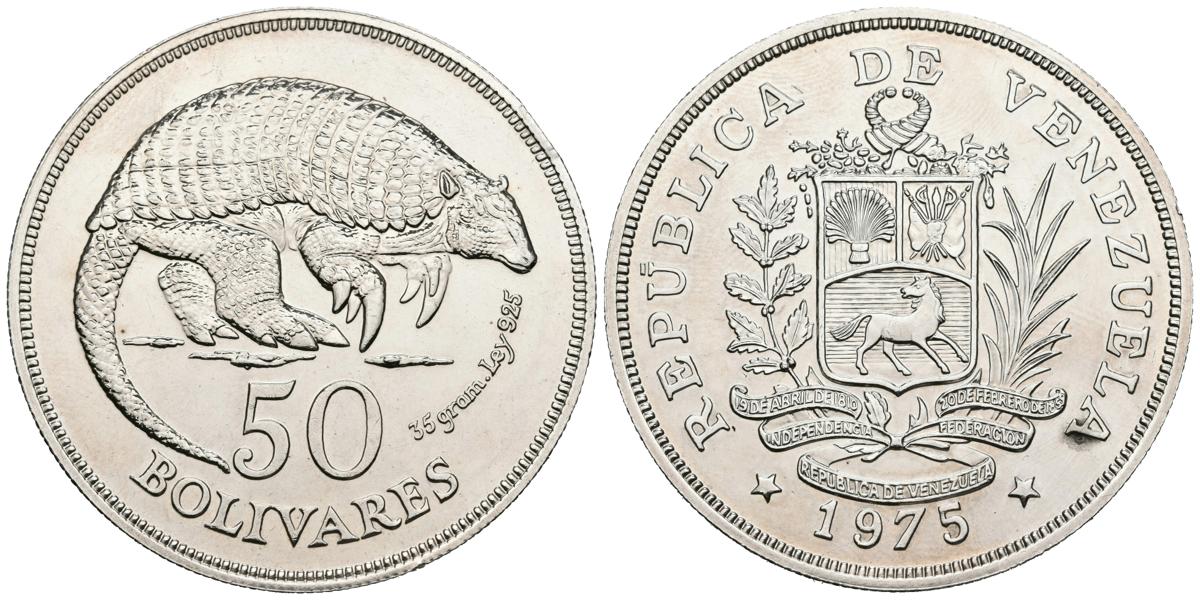 REPUBLIC OF VENEZUELA. 50 Bolivars. (Ar. 35.37g / 41mm). 1975. London. (Km # Y47). UNC.