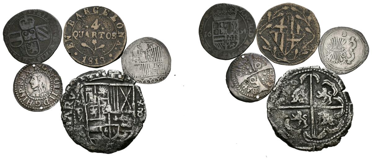 SPANISH MONARCHY. Set of 5 coins, 3 silver and 2 bronze, from different Spanish kings. TO EXAMINE.
