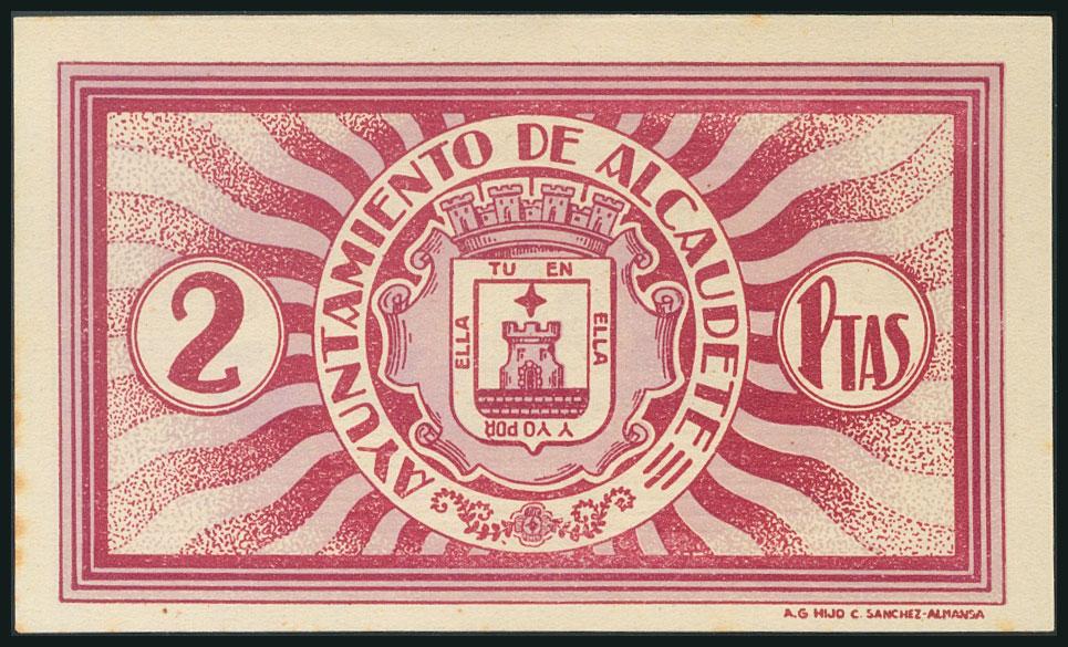 ALCAUDETE (JAEN). 2 Pesetas. 1937. (González: 313). Unusual AU.