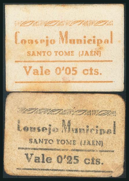 SANTO TOME (JAEN). 5 Cents and 25 Cents. (1937ca). (González: 4765, 4767). Very rare. AU/ F.