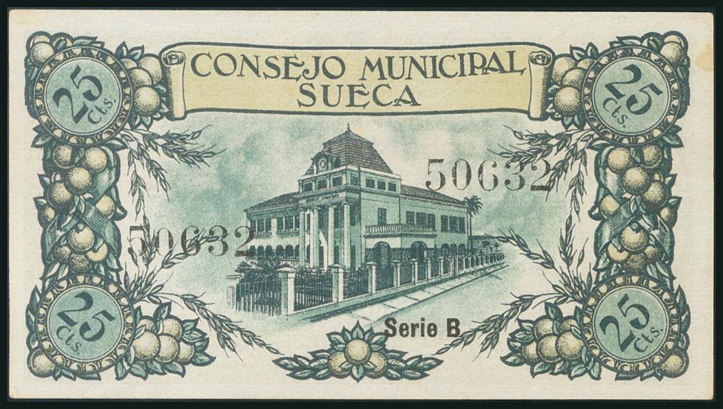 English SWEDEN (VALENCIA). 25 cents. June 1, 1937. Series B. (González: 4929). AU.