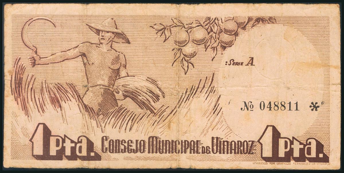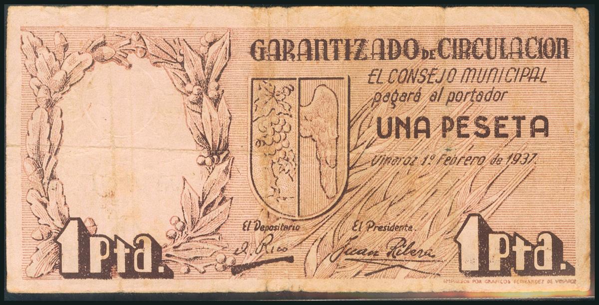 VINAROZ (CASTELLON). 1 peseta. February 1, 1937. Series A. (González: 5775). G.