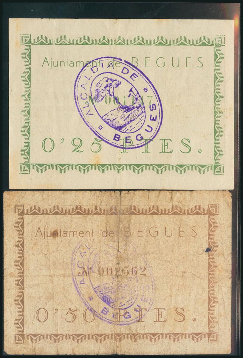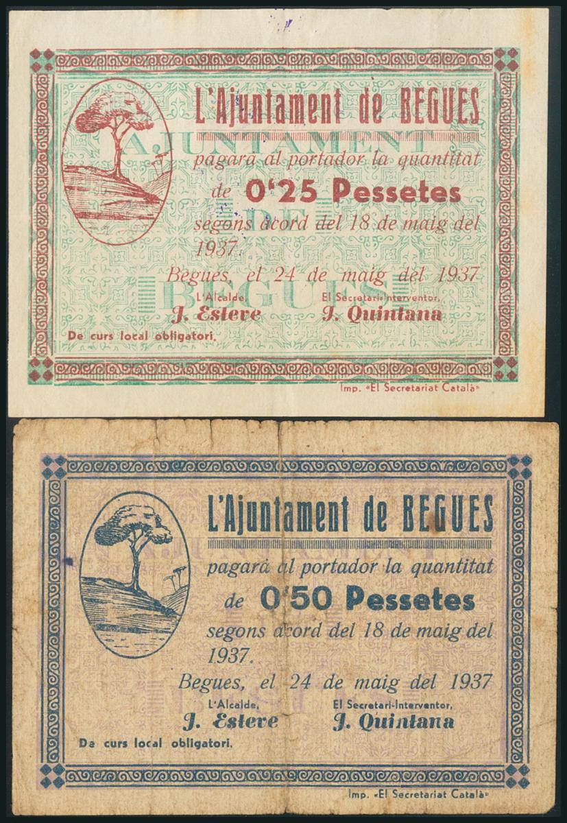 English BEGUES (BARCELONA). 25 Cents and 50 Cents. May 24, 1937. (González: 6935, 6936). XF/ F.