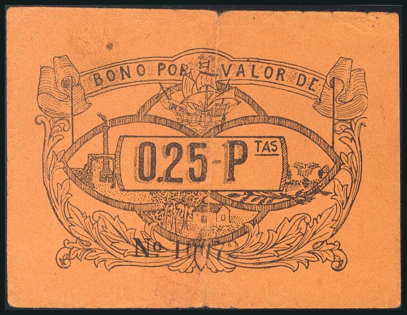 ARGAMASILLA DE CALATRAVA (CIUDAD REAL). 25 cents. August 1937. Series C. (González: 769). Unusual VF.