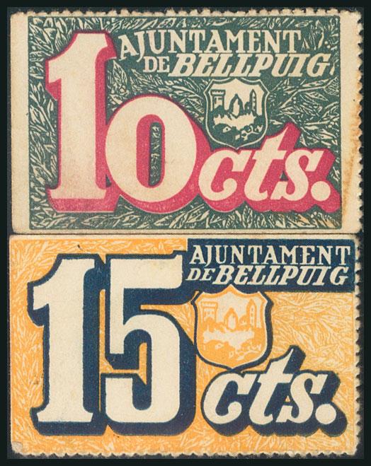 BELLPUIG DE URGELL (LERIDA). 10 Cents and 15 Cents. (1938ca). (González: 6983/84). Rare complete series. AU.