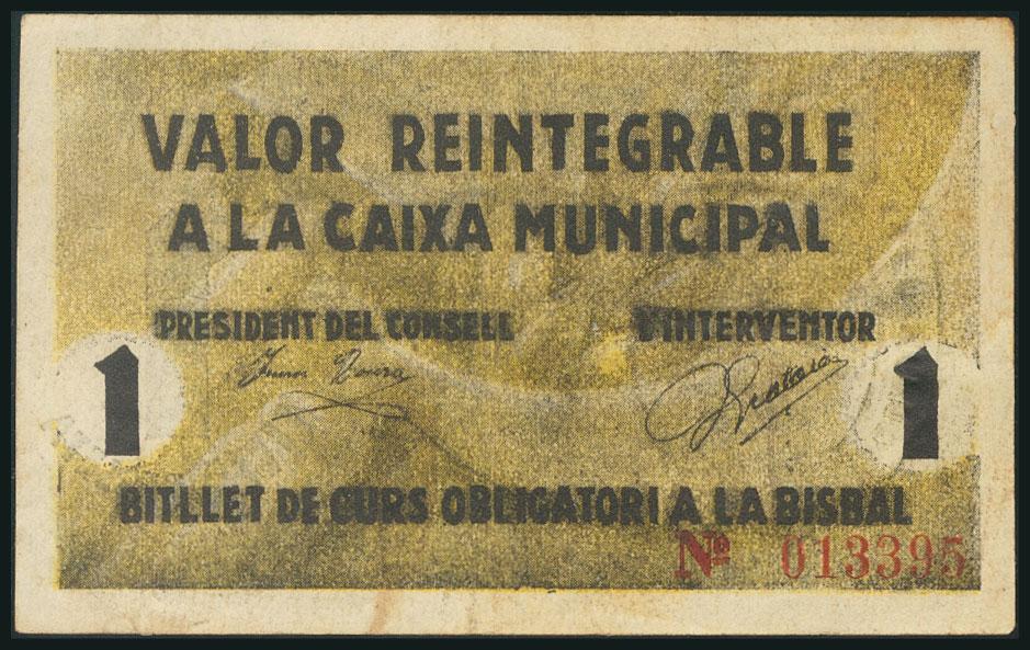 LA BISBAL (GERONA). 1 peseta. (1938ca). (González: 7063). F.