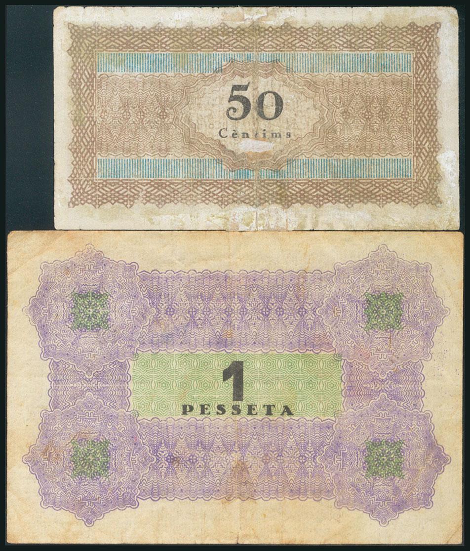 BISBAL DEL PENEDES (TARRAGONA). 50 Cents and 1 Peseta. August 1937. (González: 7095, 7096). Unusual F.