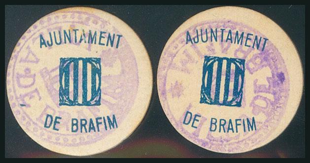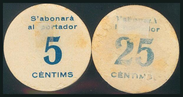 BRAFIM (TARRAGONA). 5 Cents and 25 Cents. (1938ca). (González: 7196). Rare AU.